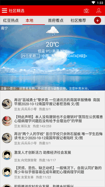 掌上红豆是一款功能全面的在线生活交流社区,能够及时的了解身边的各种资讯,软件的分类非常的详细,能够对公交进行实时的查询,可以快速的了解公积金的情况,能够随意的进行切换,感兴趣的小伙伴快来下载体验一下吧。