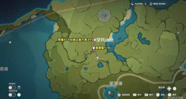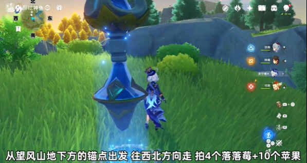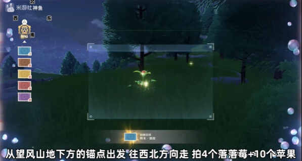 2、从锚点向西北方向走就可以找到4个落落果和10个苹果。