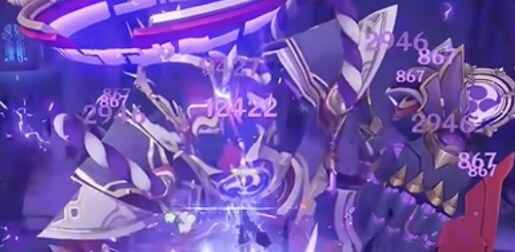 3、优先使用班尼特开启大招,然后使用九条裟罗大招接E技能来降低敌人的雷抗。
