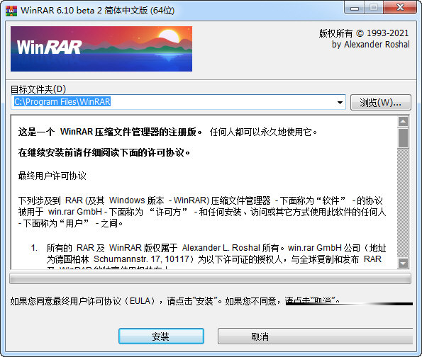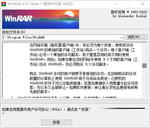 winrar绿色版无广告64位 V6.20 Beta 1 中文破解版