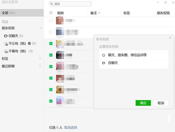此外,还能批量勾选好友进行批量的修改操作,相比原旧版本需要一个一个手动修改来说,批量操作可谓具有划时代的意义,这对于加好友比较多的的微信用户来说简直是福音!