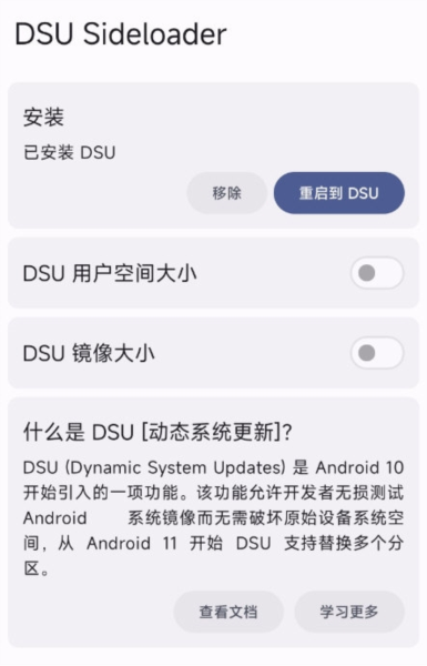 4、下图APP安装安装包,然后选择dsu用户空间大小(理论20_30gb)