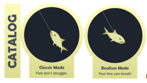 1经典模式(比较休闲,鱼不会挣扎)和2真实模式(鱼会挣扎)