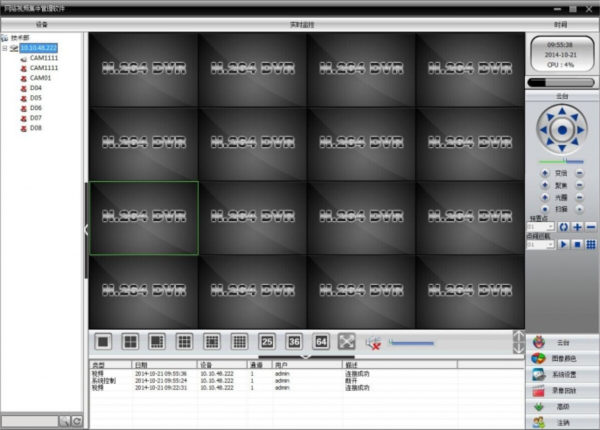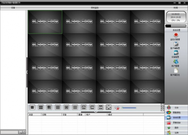 监控中心主控软件:可以监控查询管理DVR、DVS和IP摄象机等设备的图象,监控管理来自DVR、DVS和IP摄象机接入的防盗、防灾、求助报警信号和门禁控制信号,并实现报警联动录像。