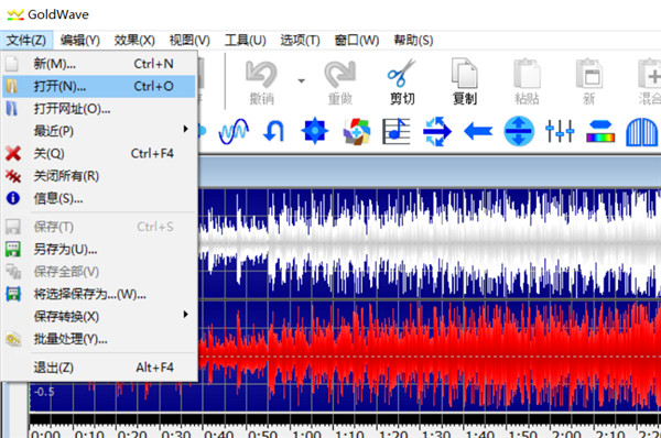 首先,我们进入GoldWave中文版的主界面,双击“打开”键,找到需要提取的视频文件,不做任何操作,直接点击左上角的“另存为”,点击“mp3”格式即可。