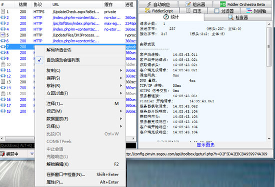 软件包含了一个简单却功能强大的基于JScript .NET事件脚本子系统,非常灵活性非常棒,可以支持众多的http调试任务,能够使用.net框架语言进行扩展,并记录所有的 http 流量,允许识别任何看不见的页面调用,还提供分析会话数据功能,可以帮助你详细分析Web会话缓存,Cookie和标题属性,轻松检查页面是否存在代理缓存,而且相较于其他的网络调试器,fiddler要更加简单,因为它仅仅只暴露http通讯,还提供一个用户友好的格式,绝对是你的最佳选择。
