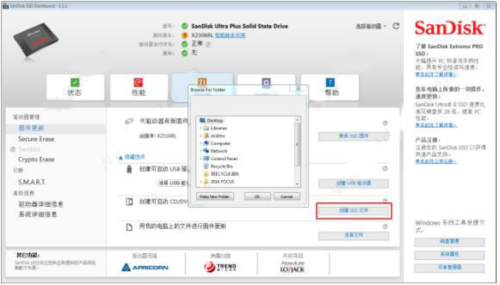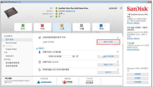 如果您的闪迪SSD有可需要更新的固件,闪迪SSD Dashboard 仪表盘会允许您创建一个可启动的USB或CD来进行固件更新。