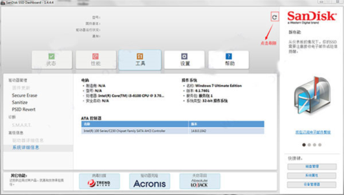 1、下载解压,正确安装好闪迪固态硬盘工具,软件都会自动检测识别硬盘,如果未能识别,只需点击刷新按钮即可。