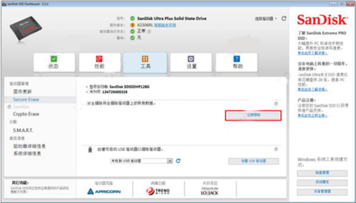 SanDisk SSD Dashboard是闪迪官方用于代替之前的 SSD Toolkit 的固态硬盘工具,它和其他固态硬盘管理工具一样,具备信息检测、SMART 指令开启、性能优化、固件升级、安全擦出、制作 USB/CD 启动盘等功能。