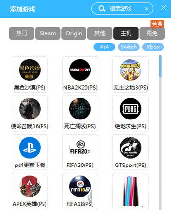 1、首先我们在添加游戏中选择【主机】一栏的PS4,在里面选择要加速的游戏