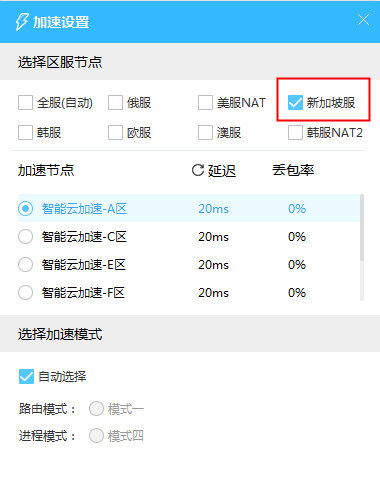 注意,并不一定是所有游戏都支持东南亚服哦,这里小编还是推荐使用推荐的全服区服节点来加速,这样一来游戏的延迟也会得到很大的改善。