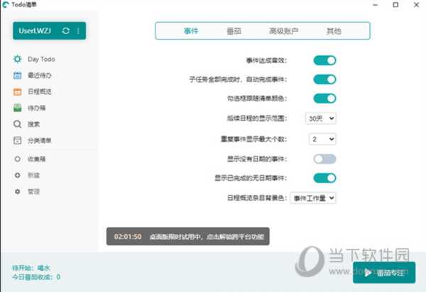 1、Todo清单可以帮助用户管理工作,可以在软件设置提醒事件