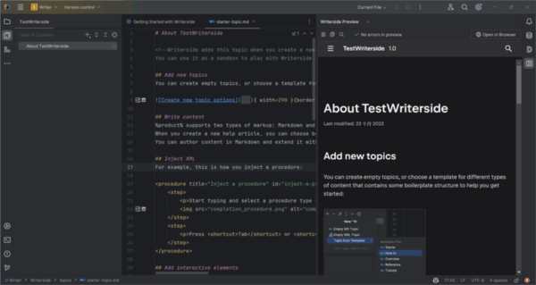 Writerside允许开发人员和编写人员在产品文档、API 参考、开发人员指南、教程和操作方法方面进行协作;基于人工智能的拼写检查和语法纠正工具支持超过 25 种语言,包括英语、德语、西班牙语和中文,基于 IntelliJ 平台的 JetBrains IDE,开发人员可使用它编写、构建、测试和发布技术文档,可以作为 JetBrains IDE 中的插件使用,也可以作为独立工具使用。