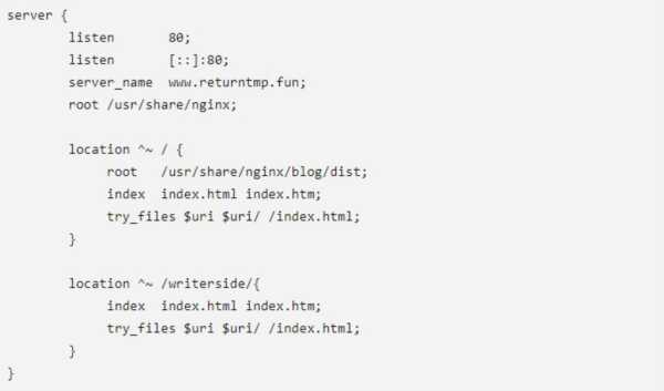 将上面的压缩包解压到服务器的目录/usr/share/nginx/writerside 中,下面是我的 nginx.conf 配置,大家可以酌情参考