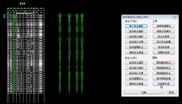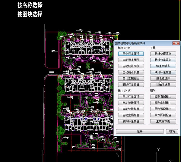 按名称选择苗木标注,按图块批量选择苗木图例引出标注等等....