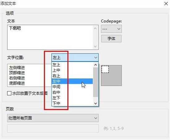 6、设置好字体之后,在文字位置这里可以打开下拉列表,选择想要设置的水印所在的位置,根据自己的需求选择即可。