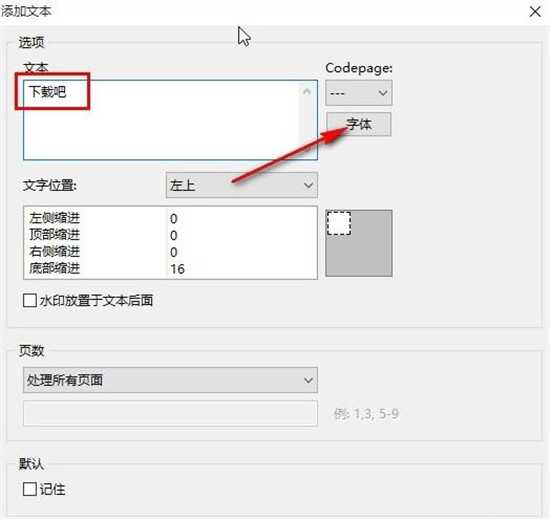 4、点击打开添加文本水印的界面之后,我们在文本框中输入想要添加的文本内容,然后点击右边的字体按钮,可以对水印字体样式进行设置。