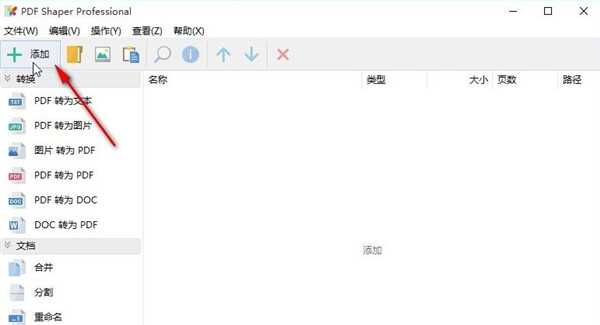 1、首先第一步我们打开软件之后,在左上角找到添加这个功能按钮并点击,准备选择添加想要处理的PDF文件。