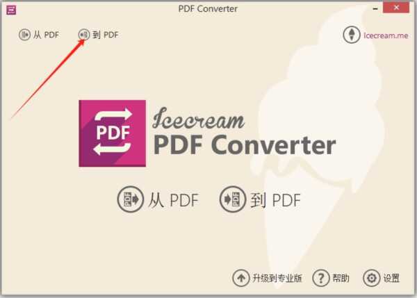 1、打开软件在Icecream PDF Converter首页,你将看到两种可能的工作模式:“从 PDF ”和“到 PDF ”,我们选择第二个继续;