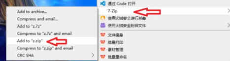 2、打开后7-zip鼠标右键单击我们要压缩的文件夹,鼠标右键点击【7-zip】,点击【7-zip】这个选项,出现右侧选项栏,这里可以自行选择压缩包后缀扩展名(.zip)或(.7z),同样假如选择(.zip)格式,然后选择【add to "zip"】就可以了