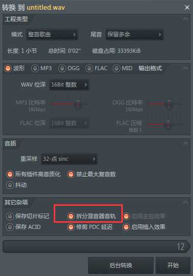 第3步,在打开的转换窗口中,将其他杂项里的分离混音器音轨选中,默认其他选项,如下图: