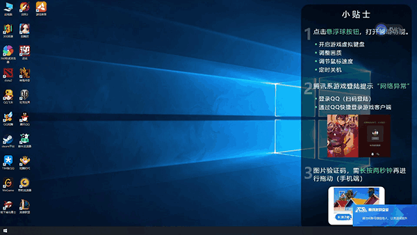 8、排队完毕就可以进入到云电脑界面,可以在这里启动电脑游戏,右侧显示一个蓝色的悬浮球,点击可以进入设置界面