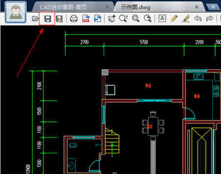 1、首先,进入到图纸的编辑界面中,在制作完图纸设计之后需要进行保存操作,这是做完图纸的第一个工作,点击上方功能栏目中的“保存”按钮。