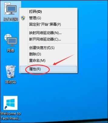 1、右键Win10系统桌面上的“这台电脑”图标,选择弹出菜单的属性。