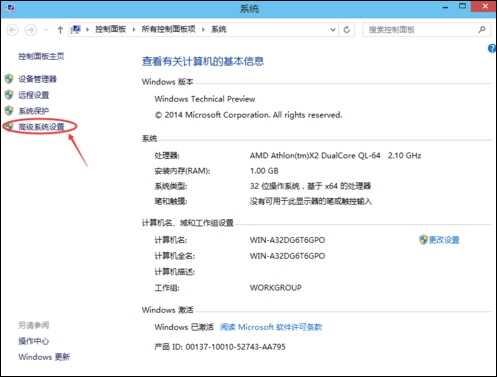 2、点击打开属性窗口,点击左侧的高级系统设置。
