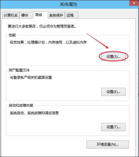 3、点击进入系统属性的高级选项卡,点击性能下方的设置。打开的窗口可以设置性能视觉效果,处理器计划,内存使用,以及虚拟内存。