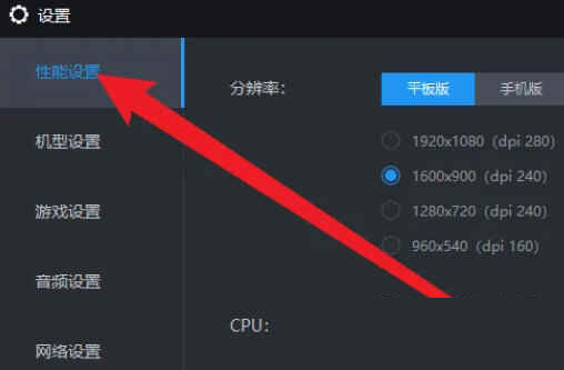 点击性能设置中的“平板版”,在点击“保存设置按钮”,如果图中标注所示
