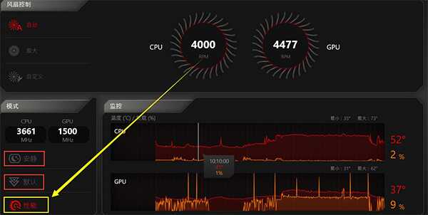 三、打开笔记本独有的设置面板,把性能模式调节到最高性能模式。