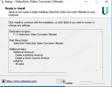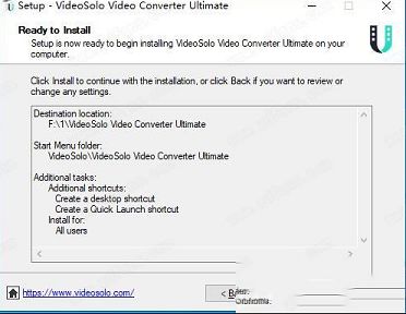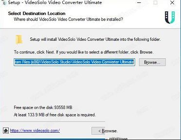 4、点击Browse选择软件安装位置安装向导默认设置的软件默认安装路径为:C:\Program Files (x86)\VideoSolo Studio\VideoSolo Video Converter Ultimate