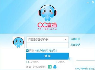 1、打开网易CC语音软件,然后登陆账号密码,没有账号密码的朋友可以使用第三方账号登录网易CC语音