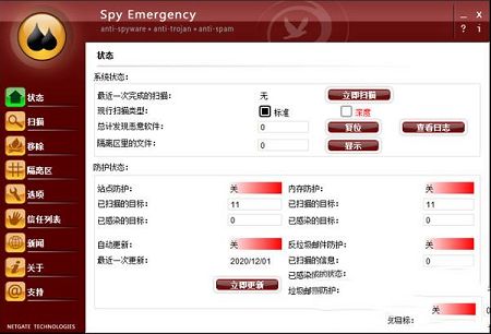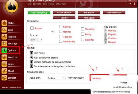 “选项”窗口包含可以自定义的Spy Emergency设置。计划是在指定时间运行扫描的简单方法。防护罩可以保护和监视您的系统,一旦被感染,您将得到警告和采取适当措施的选择。启用自动更新可以为您的系统提供更好的保护,因为数据库将始终使用最新感染的签名进行更新。