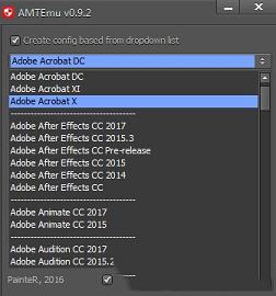 1.下载打开AMT Emulator 2017破解版,这里有adobe系列的多个产品,这里勾选选择你想要破解的产品。