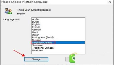 7、中文设置,运行软件选择 Simplified Chinese(简体中文)后,点击窗口下方的“Change”按钮确定
