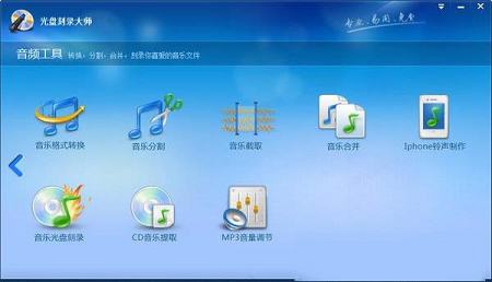 2.刻录音乐光盘:可以将MP3, WAV, WMA, AAC, AU, AIF, APE, VOC, FLAC, M4A, OGG等主流音频格式文件刻录成为在汽车 CD播放器、家用VCD、家用DVD个人电脑上面播放的音乐光盘;同时可以制作BIN, APE, SVD等常见格式的音乐光盘映像文件;还可以把MP3/WMA/ACC音乐刻录到CD/DVD光盘中或保存成ISO格式的映像文件。
