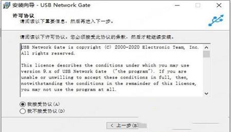 2、双击“usb_network_gate.exe”选择中文开始安装;