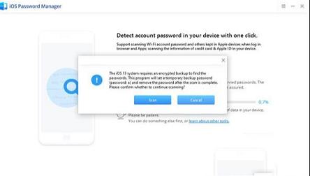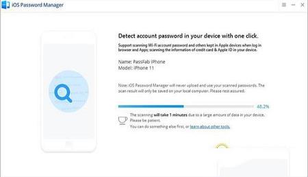 等待一段时间,以分析和扫描iPhone或iPad中的密码信息。在此过程中,请勿断开设备的连接。