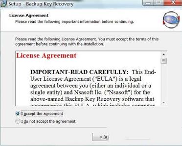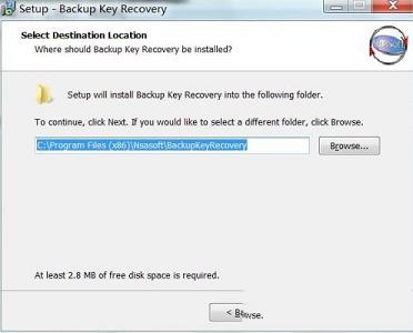3、点击Browse可更改安装软件位置安装向导默认设置的软件默认安装路径为C:\Program Files (x86)\Nsasoft\BackupKeyRecovery