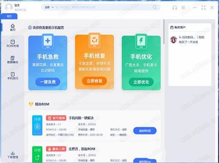 1、一键刷机工具:安全省时省心,让刷机更简单;2、ROM市场:提供精品ROM包资源下载, 不用费用找,干净安全;