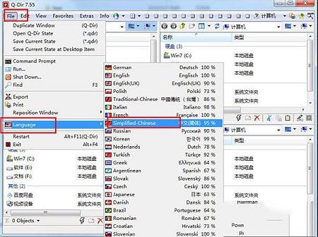 1、双击“Q-DirPortable.exe”运行软件,默认为英文,下面开始设置中文。