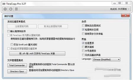 7、与Windows资源管理器紧密集成,TeraCopy 完全可以替换资源管理器中复制和移动功能,像往常一样甚至比以往更方便地传输文件