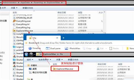 5、再将Fix夹中“ExplorerMax.exe”文件复制粘贴到安装目录中进行替换默认安装目录【C:\Users\Administrator\AppData\Roaming\ExplorerMax】