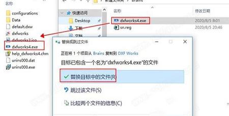 5、接下来对软件进行破解,将brains破解文件夹中的“dxfworks4.exe”复制到软件安装目录下替换即可