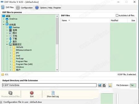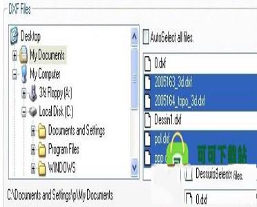 2、使用左侧窗口浏览您的磁盘。DXF文件出现在右侧窗口。您可以在点击时按住键选择多个文件。如果您选择该选项,那么该目录中的所有DXF文件将被自动选择。