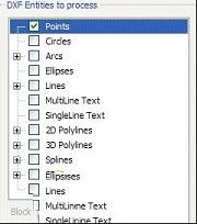 只需在列表中选择必须处理的DXF实体。