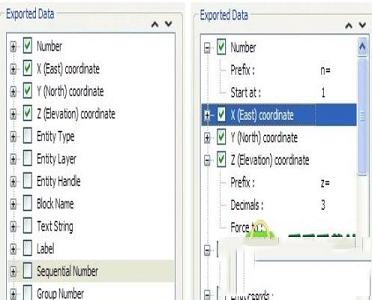 3、这也是您需要导航以精确指定要导出的数据的地方。行号,X,Y和Z坐标,实体类型,图层和句柄,文本字符串,标签和顺序号只是其中的一部分,并且提到您可以轻松更改列表中任何项目的优先级。