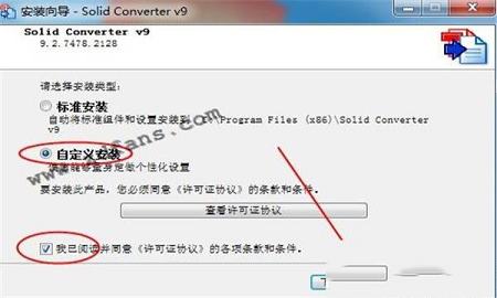 2、软件进入安装向导界面后,用户可以选择标准安装与自定义安装两种方式。这里我们选择【自定义安装】,勾选【我已阅读并同意《许可证协议》】,点击【下一步】;